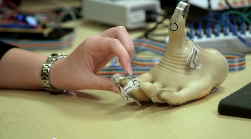 The system, which is limited to the lab at this point, uses electrical stimulation to give the sense of feeling. But there are key differences from other reported efforts.