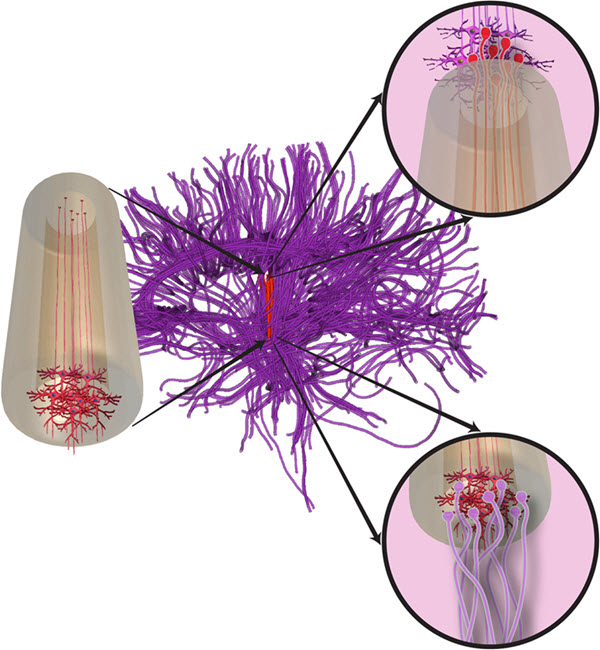 The team replaced needles with a molded cylinder of agarose (a sugar) filled with an extracellular matrix (ECM) supporting structure through which axons — and associated neurons — could grow in the cerebral cortex and the thalamus. The new axons maintained their architecture for several weeks and successfully integrated into existing brain structures, softening immediately following insertion to better match the mechanical properties of the native brain tissue.